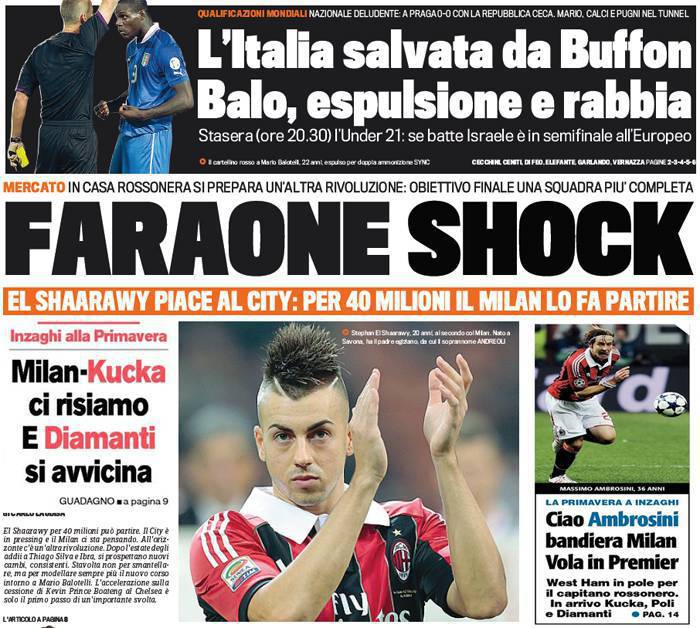 I titoli Gazzetta, CorSport e Tuttosport: Faraone shock, super offerta del City! Ambrosini e Boateng in Premier… – Foto 08/06/2013 - 07:05 di Redazione2 RASSEGNA STAMPA MILAN FOTO – Di seguito potete trovare i principali titoli dei tre quotidiani sportivi, La Gazzetta dello Sport, Corriere dello Sport e Tuttosport, riguardanti naturalmente il nostro Milan. La redazione di Milanlive.it