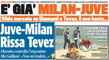 I+titoli+Gazzetta%2C+CorSport+e+Tuttosport%3A+sfida+Milan-Juve+per+Tevez%2C+Diamanti+e+non+solo%2C+Balo+e+Steph+si+divertono+a+Rio+%26%238211%3B+Foto