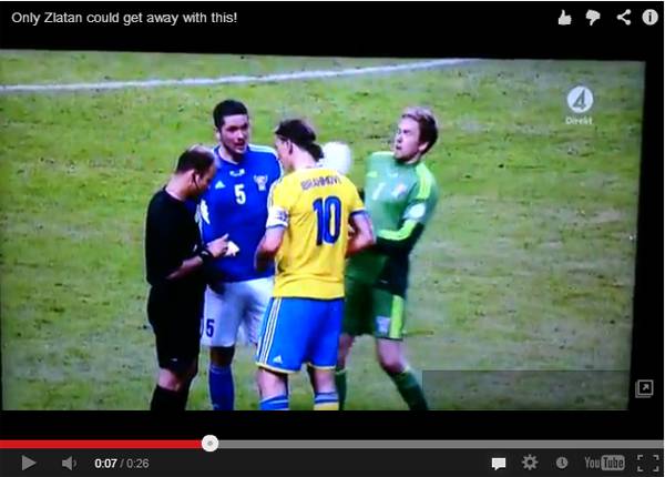 VIDEO IBRAHIMOVIC – Zlatan Ibrahimovic ne combina un’altra delle sue. Durante la sfida fra la nazionale svedese e quella delle isole Far Oer, il bomber di Malmoe è stato protagonista di un gesto di stizza. Dopo un fallo di un compagno con conseguente espulsione, lo svedese è andato a chiedere spiegazioni all’arbitro e nel contempo ha buttato (non con violenza) la palla addosso al portiere avversario con un passaggio “no look” in stile Magic Johnson. Di seguito il fattaccio!
