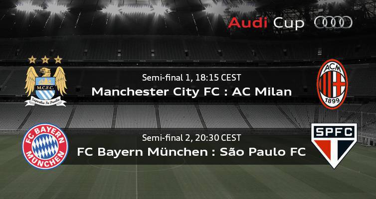 FOTO AUDI CUP – E’ stato ufficializzata nelle scorse l’Audi Cup 2013, classico quanto spettacolare torneo estivo a cui il Milan parteciperà durante fine luglio, inizio agosto. La prima sfida del Milan si terrà all’Allianz Arena di Monaco il 31 luglio contro il Manchester City, alle ore 18.15, mentre il Bayern, padrone di casa, se la vedrà contro il San Paolo alle 20.30. La vincente delle due farà la finalissima il giorno dopo, il primo agosto.