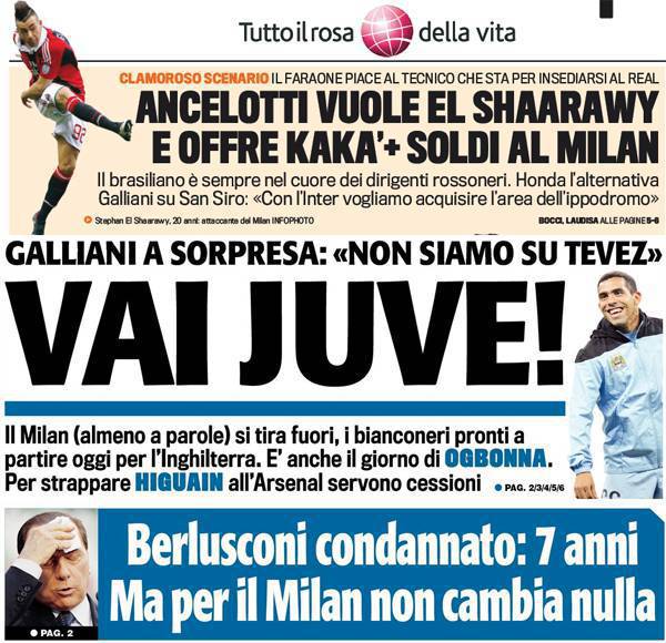 I titoli Gazzetta, CorSport e Tuttosport: anche il Real su El Shaarawy! Galliani a sorpresa su Tevez… – Foto 08/08/2013 - 15:0425/06/2013 - 07:36 di Redazione2 RASSEGNA STAMPA MILAN FOTO – Di seguito potete trovare i principali titoli dei tre quotidiani sportivi, La Gazzetta dello Sport, Corriere dello Sport e Tuttosport, riguardanti naturalmente il nostro Milan. http://wehelpyouwritee.com/ La redazione di Milanlive.it jfdghjhthit45