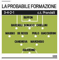SPAGNA ITALIA PROBABILI FORMAZIONI – E' emergenza per Cesare Prandelli in vista della sfida contro la Spagna, semifinale della Confederations Cup che si terrà domani sera. Il ct potrebbe tornare alla difesa a 3 con Barzagli, Bonucci e Chiellini. A centrocampo Maggio e Giaccherini sulle fasce, con Pirlo (che dovrebbe tornare disponibile) affiancato da De Rossi. Infine l'attacco con Gilardino unica punta, supportato alle spalle da Marchisio e Candreva. Se l'ipotesi de La Gazzetta dello Sport venisse confermata, Prandelli “taglierebbe” di fatto Abate, Montolivo e De Sciglio, senza dimenticarsi di El Shaarawy. Balotelli, invece, è già tornato in Italia dopo l'infortunio muscolare.