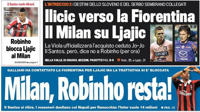 I titoli Gazzetta, CorSport e Tuttosport: Robinho, il Santos dice no (per ora), il Milan su Ljajic – Foto 11/07/2013 - 07:30 di Redazione2 RASSEGNA STAMPA MILAN FOTO – Di seguito potete trovare i principali titoli dei tre quotidiani sportivi, La Gazzetta dello Sport, Corriere dello Sport e Tuttosport, riguardanti naturalmente il nostro Milan. La redazione di Milanlive.it