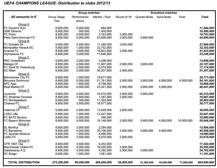 UFFICIALE PREMI UEFA MILAN – Dopo le anticipazioni degli scorsi giorni de La Gazzetta dello Sport, sono stati ufficializzata dalla UEFA i premi alle varie squadre per la Champions 2012-2013. Il Milan si porta a casa ben 51.357.000 euro, una cifra molto elevata derivante in particolare dal market pool, i premi divisi a seconda della nazione, molto alti per via del fatto che in Champions ci fossero solo due italiane, che si sono di conseguenza spartite i diritti tv. Una somma davvero importante che si spera possa sovvenzionare questo magro mercato in entrata.