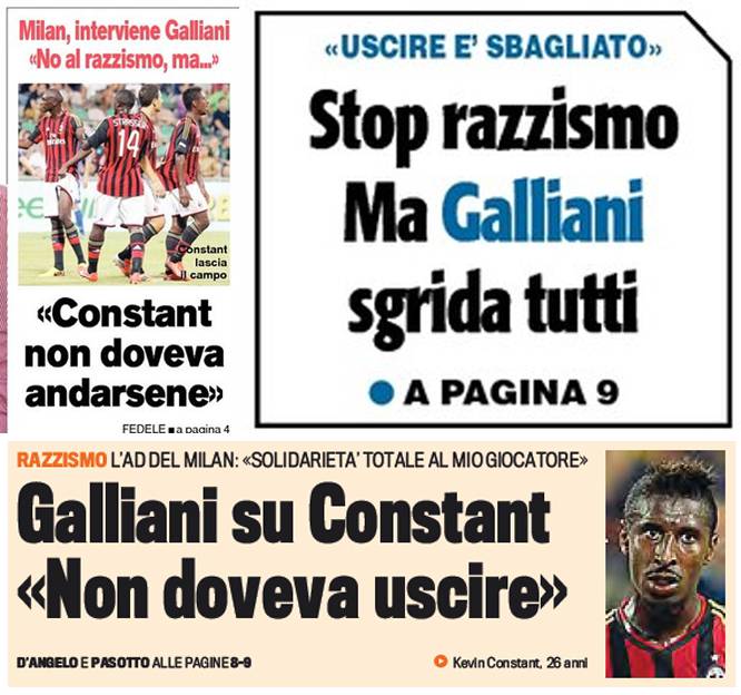 I titoli Gazzetta, CorSport e Tuttosport: Galliani sgrida Constant: “Non doveva uscire!” – Foto 25/07/2013 - 07:24 di Redazione2 RASSEGNA STAMPA MILAN FOTO – Di seguito potete trovare i principali titoli dei tre quotidiani sportivi, La Gazzetta dello Sport, Corriere dello Sport e Tuttosport, riguardanti naturalmente il nostro Milan. La redazione di Milanlive.it