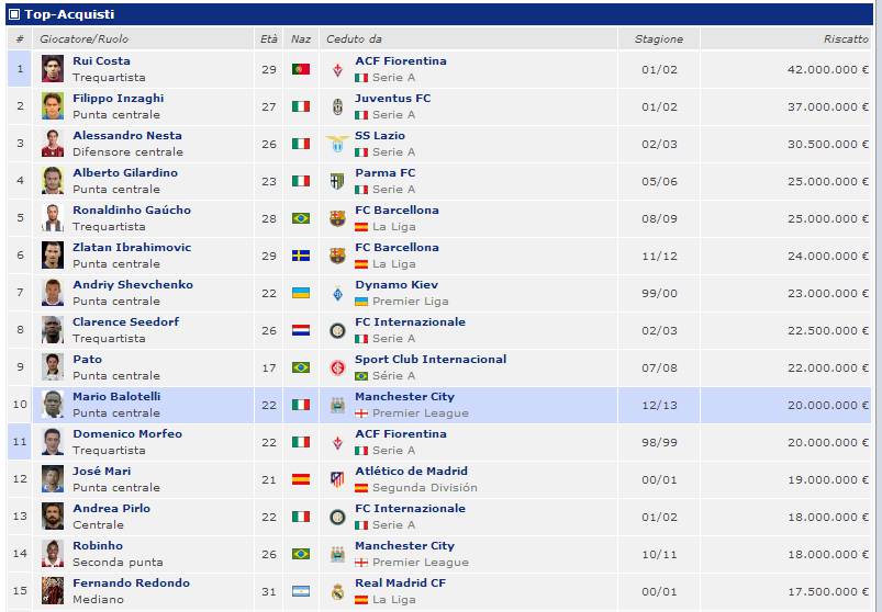 CALCIOMERCATO MILAN – Quali sono gli acquisti più cari della storia del Milan? Il noto portale Transfermark.it ci da una mano, elencando infatti le spesse più importanti del club rossonero. L’acquisto più caro si conferma Rui Costa prelevato nell’estate del 2002 dalla Fiorentina per 42 milioni di euro. Fra i vari colpi spiccano Inzaghi, Nesta, Ibrahimovic, Sheva, ma anche giocatori che non ti aspetti come Morfeo, pagato ben 20 milioni di euro, Josè Mari e Javi Moreno. Chiude la top 15 lo sfortunato Redondo, stella del Real Madrid che si infortunò durante la preparazione estiva 2001, prima ancora di mettere piede in campo.