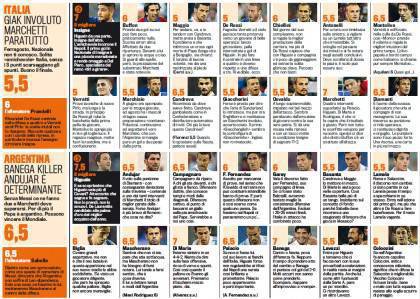 ITALIA ARGENTINA 2-1 VOTI PAGELLE GAZZETTA SPORT – Di seguito potrete consultare i voti e le pagelle Gazzetta dello Sport di Italia-Argentina. Ieri sera si è giocata all’Olimpico di Roma l’amichevole fra le due big conclusasi con la vittoria dei sudamericani per 2 a 1. Protagonisti assoluti i due calciatori del Napoli, Insigne e Higuain, entrambi in gol ieri. Molto bene anche Riccardo Montolivo (voto 6.5), che come al solito distribuisce assist ogni dove regalando geometrie ed organizzazione all’intera squadra. Delude, infine, Marco Verratti, alla prima prova da erede di Pirlo.