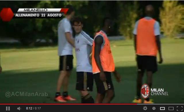 MILAN VIDEO – Nel corso dell’ultimo allenamento Mario Balotelli ha fatto un piccolo scherzo ad Andrea Poli posizionandosi dietro di lui e rifilandogli una piccola ginocchiata. Il neo acquisto del Milan non sembra aver particolarmente apprezzato il gesto del compagno.