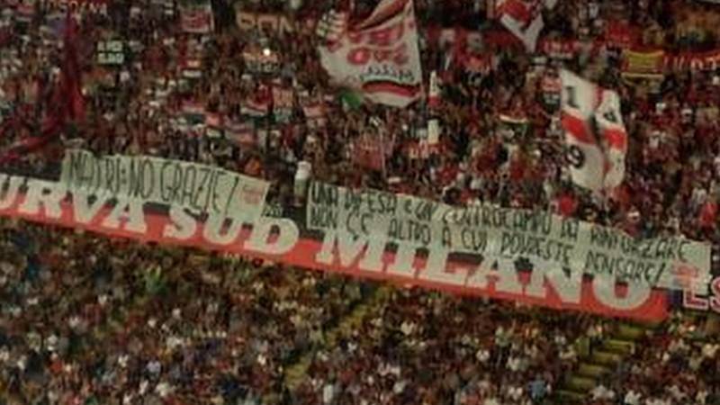 CURVA SUD MILANO – La Curva Sud Milano attraverso un comunicato ufficiale ha voluto fornire una spiegazione in merito ai due striscioni esposti ieri sera nel corso di Milan-Psv Eindhoven. Il primo con scritto “Matri no grazie!” e l’altro “Una difesa e un centrocampo da rifondare, non c’è altro a cui dovreste pensare!“.