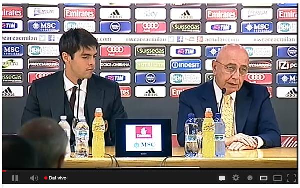 PRESENTAZIONE DI KAKA’ – Di seguito le principali dichiarazioni di Kakà dell’ad del Milan, Galliani, in occasione della presentazione del brasiliano.