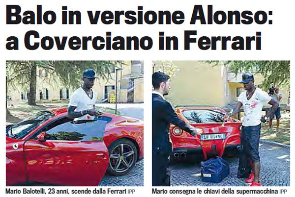 NAZIONALE BALOTELLI – Super Mario Balotelli non si smentisce mai e anche in Nazionale trova modo di far parlare di sè. Il bomber del Milan, non disponendo di un’utilitaria e decidendo di fare un breve tour della Toscana, si è presentato a Coverciano per il ritiro della Nazionale non in treno ma bensì in Ferrari, la sua splendida e fiammante F12 Berlinetta. Davvero divertente la scena immortalata da La Gazzetta dello Sport all’arrivo di Mario quando l’addetto alla sicurezza, basito, ha ricevutole chiavi del bolide di Mario per parcheggiarlo…