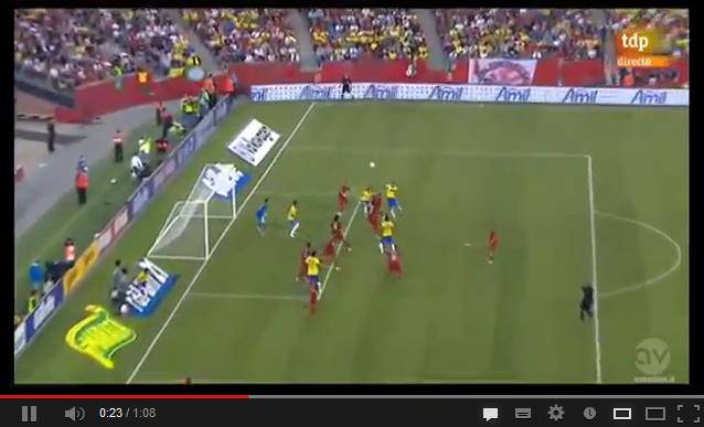 Al 18′ sono stati i lusitani a portarsi in vantaggio con Raul Meireles. Un vantaggio durato solo 6 minuti, perchè Thiago Silva con un imperioso stacco di testa ha realizzato il goal del pareggio per i brasiliani.
