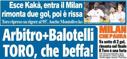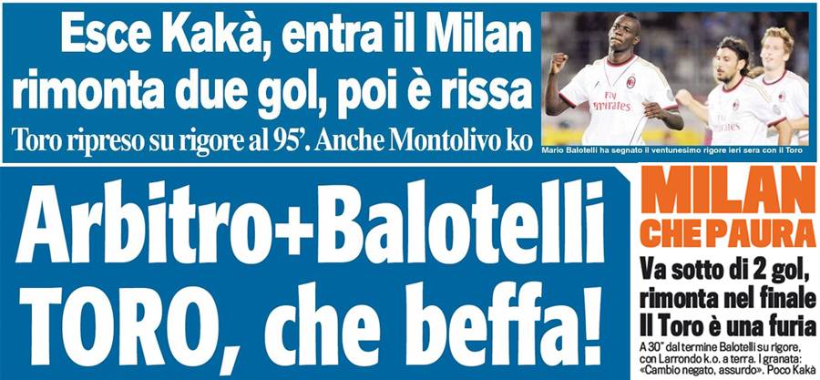 Home » rassegna stampa milan » I titoli Gazzetta, CorSport e Tuttosport: Milan che paura! Esce Kakà entra il Milan, l’arbitro… – Foto