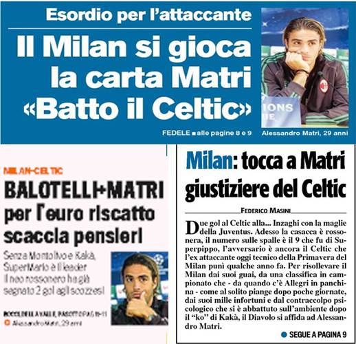 Home » rassegna stampa milan » I titoli Gazzetta, CorSport e Tuttosport: Milan, Balotelli e Matri per l’euro riscatto – Foto
