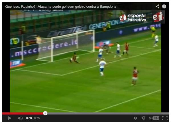 VIDEO ROBINHO SAMPDORIA – Durante la sfida fra il Milan e la Sampdoria l’isterismo dei tifosi rossoneri sarà arrivato alle stelle in occasione del gol letteralmente “mangiato” da Robinho. Durante una bella azione offensiva il brasiliano ha avuto sui piedi una palla d’oro, solo da ribattere in rete a porta vuota dopo bel cross dalla destra, ma l’ex City ha clamorosamente colpito male calciando a lato: di seguito il video dell’errore.
