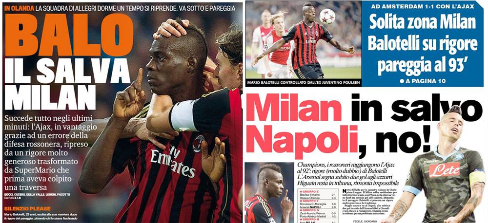 Home » Milan News » I titoli Gazzetta, CorSport e Tuttosport: Balo il salva Milan! Solita zona Milan, Milan in salvo – Foto
