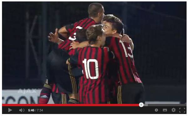 VIDEO YOUTH CHAMPIONS LEAGUE – Si è conclusa con il risultato di 3 a 2 per i rossoneri la seconda giornata della Youth Champions League. Il Diavolo ha trionfato in Olanda contro i pari età dell’Ajax grazie al gol vittoria arrivato all’86 firmato da Rondanini. Di seguito il tabellino del match nonché il video in questione.