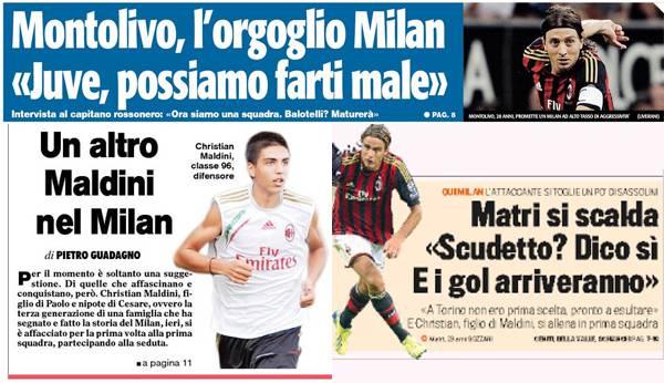 Home » Milan News » I titoli Gazzetta, CorSport e Tuttosport: un altro Maldini, Matri crede nello scudo, Montolivo… – Foto