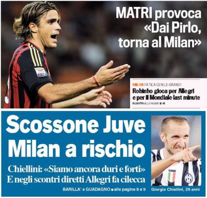 Home » Milan News » I titoli Gazzetta, CorSport e Tuttosport: Matri chiama Pirlo, scossa Juve, Robinho per i Mondiali – Foto