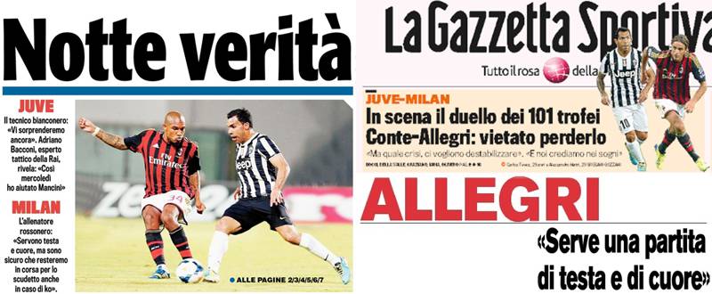 I titoli Gazzetta, CorSport e Tuttosport: Juventus-Milan, notte verità! Conte-Allegri vietato perdere – Foto