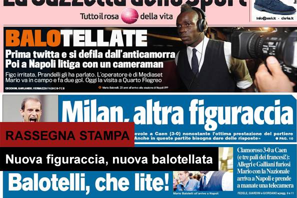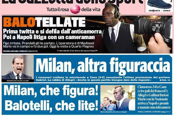 I titoli Gazzetta, CorSport e Tuttosport: nuova figuraccia Milan, nuova balotellata! – Foto