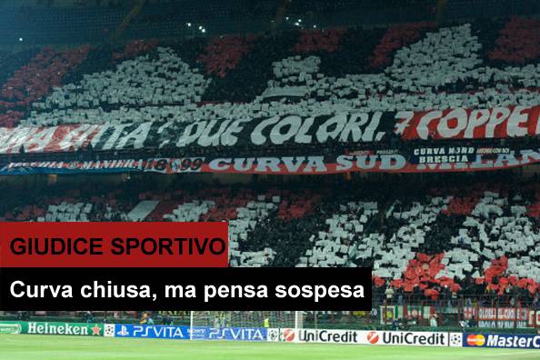 GIUDICE SPORTIVO SENTENZA – E’ arrivata la sentenza del Giudice Sportivo in merito ai cori di discriminazione territoriale intonati da diverse Curve nel weekend calcistico, fra cui quella del Milan. Per farvi capire in poche parole il provvedimento pubblichiamo quanto scrive Gazzetta.it poco fa: “Eccola, la sospensiva, applicata per la prima volta dopo la sua introduzione. Parliamo della chiusura per cori di discriminazione territoriale. A farne le spese sono Roma, Milan, Inter, Torino. Tutte con le curve condannate alla chiusura, ma la pena è sospesa e sarà applicata solo in caso di reiterazione”.