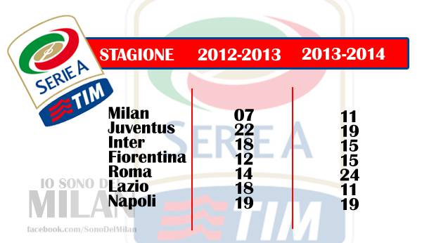 MILAN CRISI – Milan in crisi? Andando ad analizzare i dati della stagione attuale e comparandoli a quelli dello scorso anno all'ottava giornata di Serie A, si scopre come i rossoneri abbiano fatto molto meglio rispetto al 2012. Sia chiaro, l'anno scorso la banda del Diavolo partì decisamente male, e a quest'ora aveva totalizzato solo 7 miseri punti. Il Milan di quest'anno ne ha invece racimolati 11, a cui si aggiungono i 4 punti in Champions fra Celtic e Ajax. Un bottino sicuramente non eccelso ma neanche così negativo come viene descritto dalla critica, soprattutto se i rossoneri saranno in grado di ripetere lo straordinario girone di ritorno 2012-2013. Tra l'altro, andando ad analizzare i dati della scorsa stagione, si scopre come il Milan abbia fatto meglio di tutti al di là della sola Roma (24 punti conquistati contro i 14 dell'anno scorso). La Juve ha ottenuto tre punti in meno (19 contro 22), idem l'Inter (15 contro 18). La Lazio ne ha ben 7 in meno mentre il Napoli ha lo stesso identico ruolino di marca. Infine la Fiorentina, con tre punti in più rispetto all'ottobre del 2012.