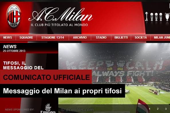 COMUNICATO UFFICIALE MILAN – Il sito del Milan ha diffuso poco fa un comunicato rivolto direttamente ai tifosi che vanno allo stadio. Ecco il testo: “La vostra forma di protesta contro una norma che appare per molti versi discutibile genera due effetti, entrambi indesiderabili. Un primo effetto è la limitazione ad accedere a San Siro. Un secondo effetto, molto più grave, è sentirsi accusare d’esser razzisti e di fare discriminazioni: eppure, il Milan è certo che nessuno di voi ha nel cuore sentimenti tanto incivili. La società farà quanto in suo potere per far modificare le norme che riguardano l’accesso agli stadi, ma ha bisogno del vostro aiuto. Ha bisogno cioè che ogni vostra eventuale, ulteriore protesta si manifesti altrimenti, con modi consentiti dalle norme vigenti e comunque tali da non far del male alla società e a voi stessi. Il Milan confida nella vostra collaborazione”.