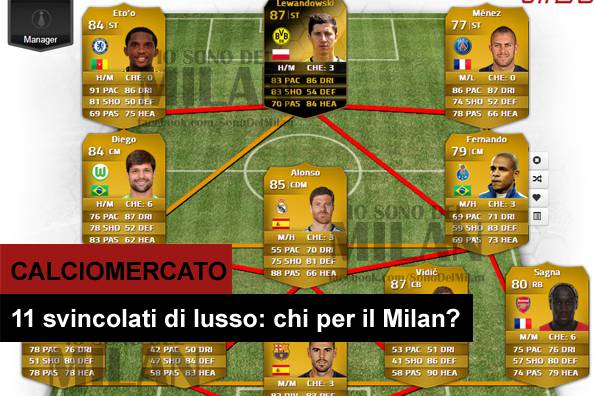 CALCIOMERCATO MILAN SVINCOLATI – Eccovi una top 11 con protagonisti i calciatori svincolati, quei giocatori il cui contratto scadrà a giugno del 2014 e che a gennaio potrebbero essere acquistati a prezzi stracciati o tutt’al più a zero in estate. Una squadra di altissimo livello composta da stelle del calibro di Terry, Eto’o, Lewandowski, Xabi Alonso, Evra, Sagna, Vidic e altri calciatori che sicuramente potrebbero fare comodo al nostro Milan e all’ad Galliani, sempre attento alle varie occasioni che si palesano all’orizzonte. A voi chi piacerebbe vedere di questi a Milanello?