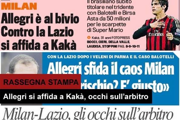 Home » Milan News » I titoli Gazzetta, CorSport e Tuttosport: Allegri si affida a Kakà, occhio all’arbitro – Foto