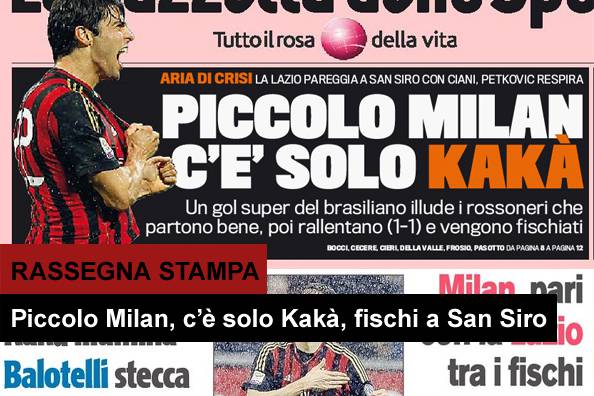 I titoli Gazzetta, CorSport e Tuttosport: piccolo Milan, c’è solo Kakà, fischi a San Siro – Foto