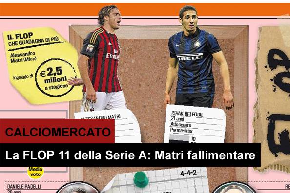 CALCIOMERCATO MILAN MATRI – Oltre alla TOP 11 La Gazzetta dello Sport ha stilato anche una FLOP 11, quella squadra composta da quei giocatori che hanno cambiato maglia in estate e che fino ad ora non hanno reso quanto ci si aspettava. Inserito il nostro Alessandro Matri, pagato ben 11 milioni di euro dal Milan alla Juventus, e fino ad oggi autore di prestazioni negative al di fuori del gol purtroppo inutile contro il Parma. La Rosa a riguardo scrive: “Chiudiamo con Matri, colpo di fine mercato del Milan: 11 milioni per un solo gol all’attivo. Pazzini sta tornando, sarà il caso di iniziare a battere un colpo per evitare di trovare carbone nella calza della Befana”.
