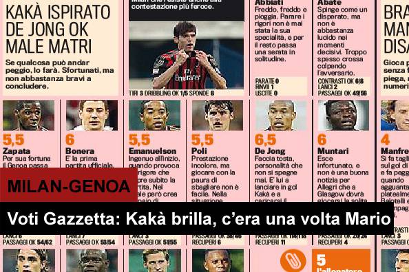Home » Milan News » Milan-Genoa, voti e pagelle Gazzetta dello Sport: Kakà brilla, c’era una volta Mario…
