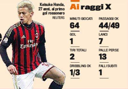 Riportiamo di seguito la grafica realizzata dalla Gazzetta dello Sport in merito alla prestazione del fantasista giapponese.