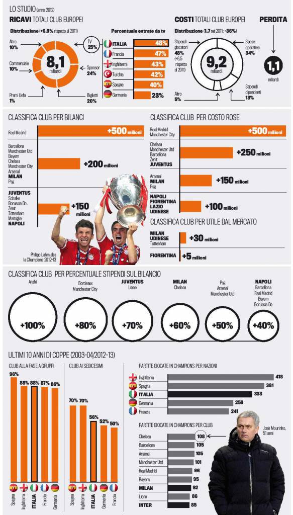 Il rapporto dell’Uefa mette in evidenza dunque dei dati interessanti. Ecco di seguito una foto riassuntiva de La Gazzetta dello Sport.