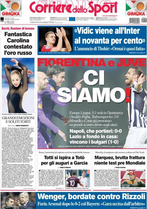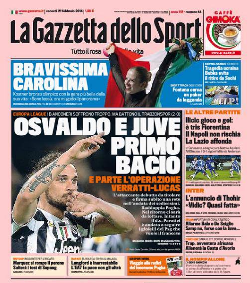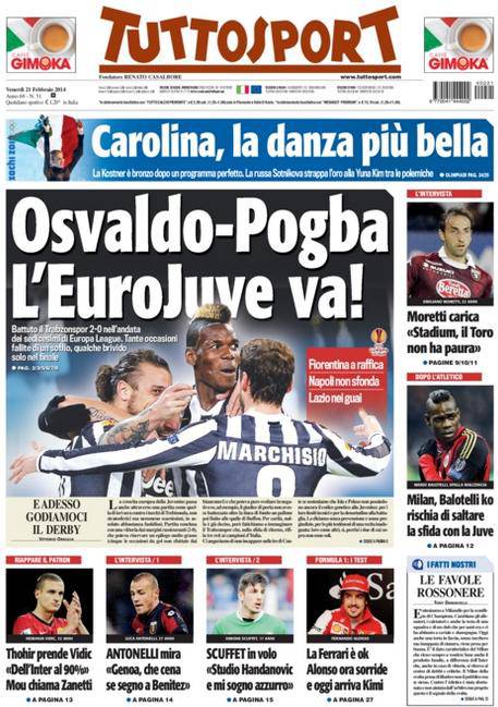 I titoli Gazzetta, CorSport, Tuttosport: allarme De Sciglio e Balotelli, Juve a rischio – FOTO 21/02/2014 - 08:57 di Matteo B. Ecco le prime pagine dei tre principali quotidiani sportivi italiani: La Gazzetta dello Sport, Corriere dello Sport e Tuttosport.