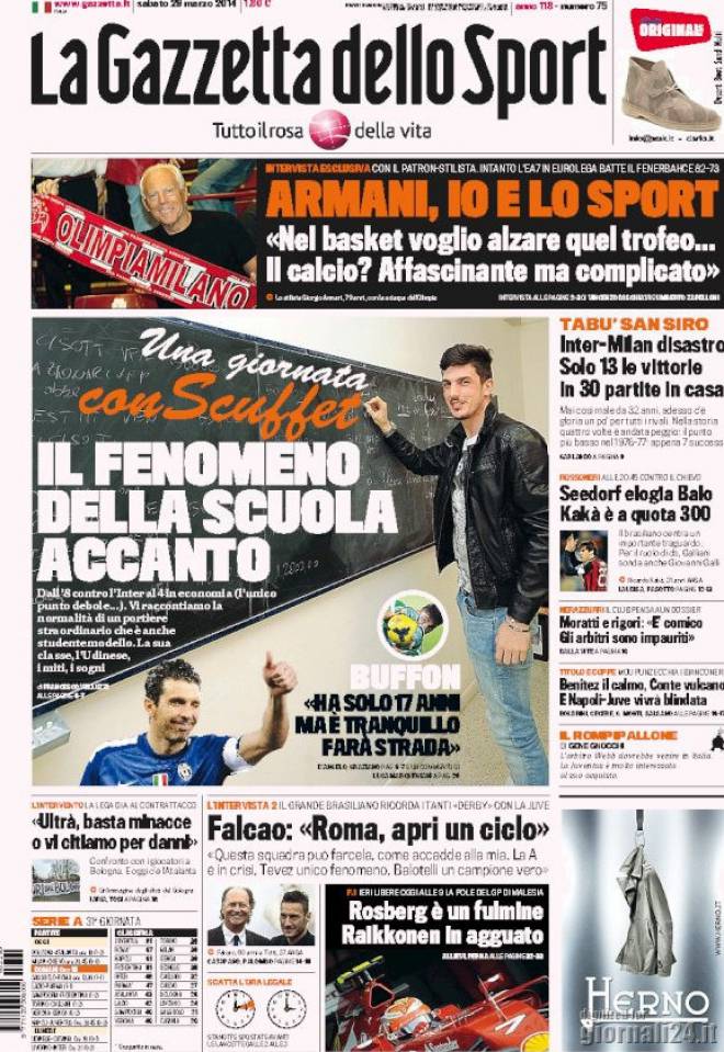 I titoli di Gazzetta, CorSport e Tuttosport: Seedorf elogia Balo, Kakà a quota 300 – FOTO 29/03/2014 - 08:08 di Keivan Karimi Ecco le prime pagine dei tre maggiori quotidiani sportivi nel giorno di Milan-Chievo Verona: