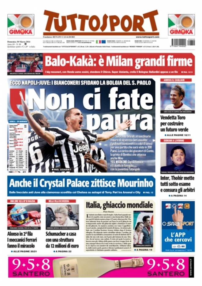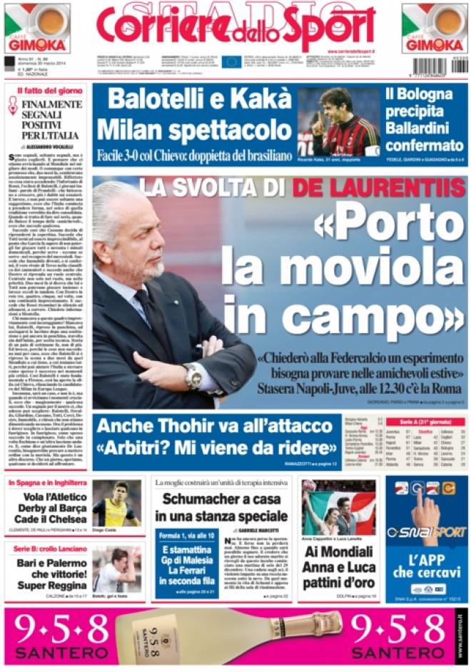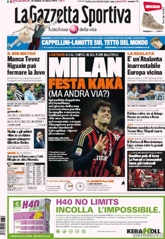 I titoli di Gazzetta, CorSport e Tuttosport: Festa Kakà, Milan spettacolo – FOTO 30/03/2014 - 07:13 di Keivan Karimi Ecco le pagine domenicali dei tre maggiori quotidiani sportivi, che danno risalto alla vittoria sul Chievo da parte del Milan e alla super prestazione di Kakà:
