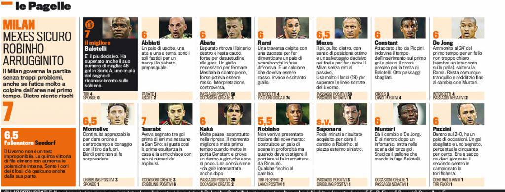 Milan-Livorno, le pagelle della Gazzetta: Mexes sicuro, Robinho arruginito 20/04/2014 - 08:40 di Keivan Karimi Ecco come la Gazzetta di oggi valuta le prestazioni dei calciatori rossoneri dopo il netto 3-0 di ieri contro il Livorno, quinta vittoria consecutiva in campionato: