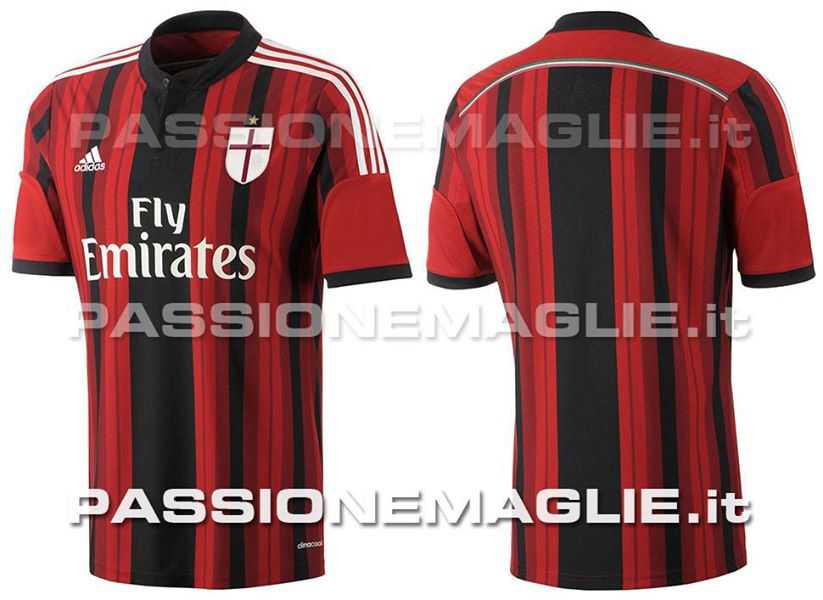 Ecco l’ immagine della prima maglia che indosserà il Milan nella prossima stagione che appare sul sito passionemaglie.it. Presenti strisce rossonere di diverso spessore e di diverso spessore, mentre sul petto compare lo stemma di Milano al posto del classico logo utilizzato da un po’ di anni a questa parte.