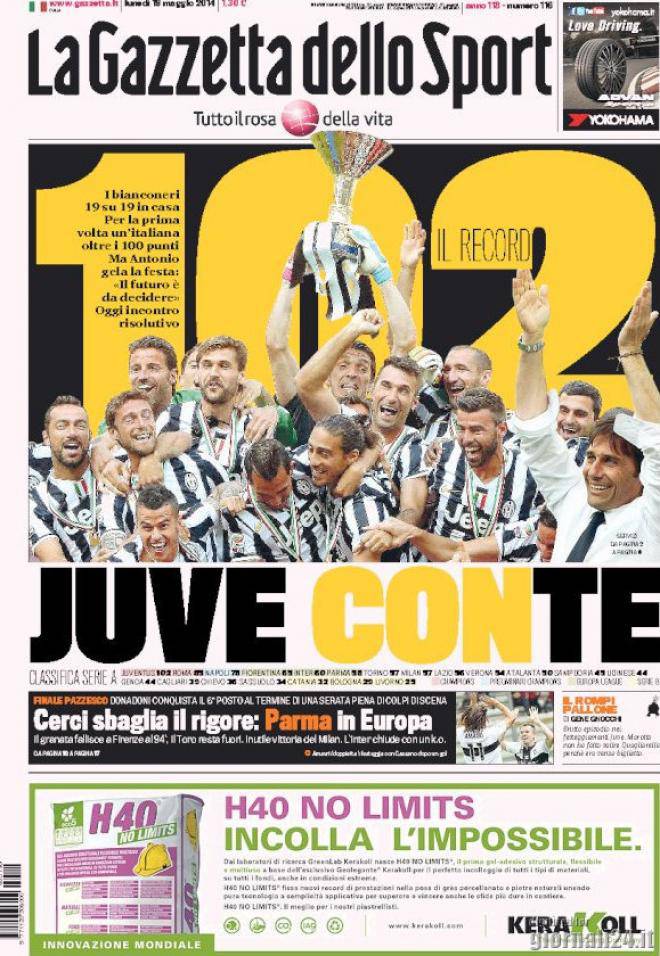 Gazzetta dello Sport, i titoli del 19 maggio 19/05/2014 - 08:06 di Keivan Karimi I titoli e la prima pagina della Gazzetta dello Sport di oggi, con un occhio alle notizie di casa Milan: Povero Diavolo, sei fuori dalle coppe Al Milan non basta battere il Sassuolo El Shaarawy-De Sciglio, segnali confortanti