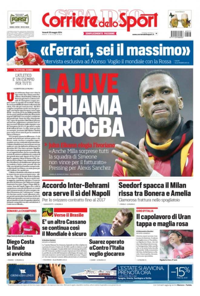 Corriere dello Sport, titoli e prima pagina del 23 maggio 27/05/2014 - 11:5823/05/2014 - 08:12 di Keivan Karimi Prima pagina e titoli del Corriere dello Sport di oggi inerenti alle cronache rossonere: Seedorf spacca il Milan Rissa tra Bonera e Amelia Corsport