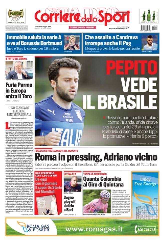 Corriere dello Sport, prima pagina e titoli del 30 maggio 30/05/2014 - 08:13 di Keivan Karimi Ecco come apre l’edizione odierna del Corriere dello Sport, con i titoli inerenti alle cronache del Milan: Milan, nuovo ciclo Tanto El Shaarawy nel motore di Inzaghi Clarence punta i piedi, Berlusconi non lo riceve