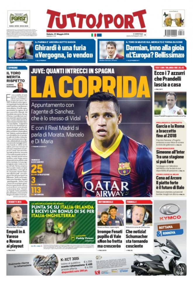 Tuttosport, prima pagina e titoli del 31 maggio 31/05/2014 - 08:13 di Keivan Karimi Ecco come apre oggi l’edizione di Tuttosport: Balotelli ultima cena Taarabt rossonero, siamo ai saluti Inzaghi, aria di annuncio