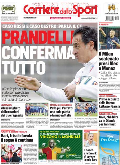 Corriere dello Sport: la prima pagina del 4 giugno 04/06/2014 - 08:27 di Matteo B. Ecco la prima pagina del quotidiano sportivo romano Corriere dello Sport del 4 giugno 2014. Corriere dello Sport 04-04-2014