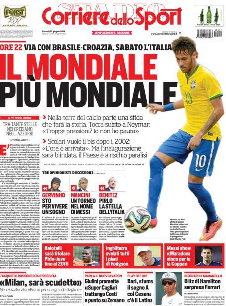 Di seguito la prima pagina del Corriere dello Sport del 12 giugno 2014.