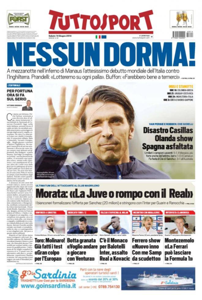 Tuttosport, prima pagina e titoli del 14 giugno 14/06/2014 - 08:21 di Keivan Karimi Ecco come apre oggi il quotidiano sportivo nazionale: Balotelli-Monaco, si tratta Ottimismo per Falcao Paloschi, rischio buste