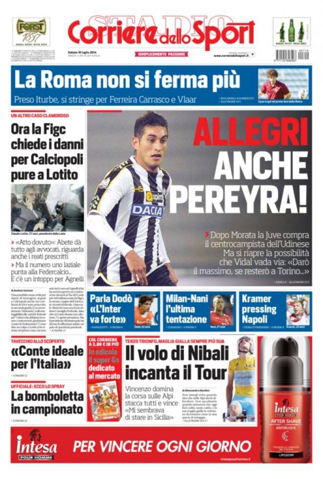 Corriere dello Sport, prima pagina e titoli del 19 luglio 19/07/2014 - 08:12 di Keivan Karimi Ecco come apre oggi l’edizione del quotidiano nazionale: Nani l’ultima tentazione Bonera avvisa Balo Missione per Criscito