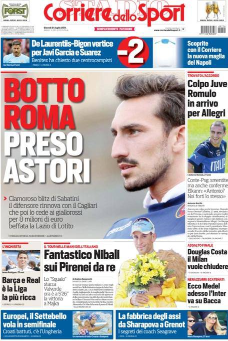 Corriere dello Sport: la prima pagina del 24 luglio 24/07/2014 - 07:57 di Matteo B. Corriere dello Sport 24-07-2014 Redazione Milanlive.it
