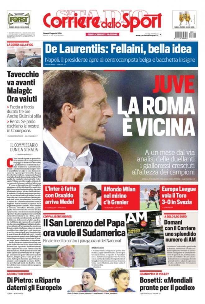 Corriere dello Sport, prima pagina e titoli dell’1 agosto 01/08/2014 - 08:12 di Keivan Karimi Ecco l’apertura del quotidiano sportivo nazionale: Balotelli non può sbagliare Missione per Campbell e Grenier Seba Rossi nei guai